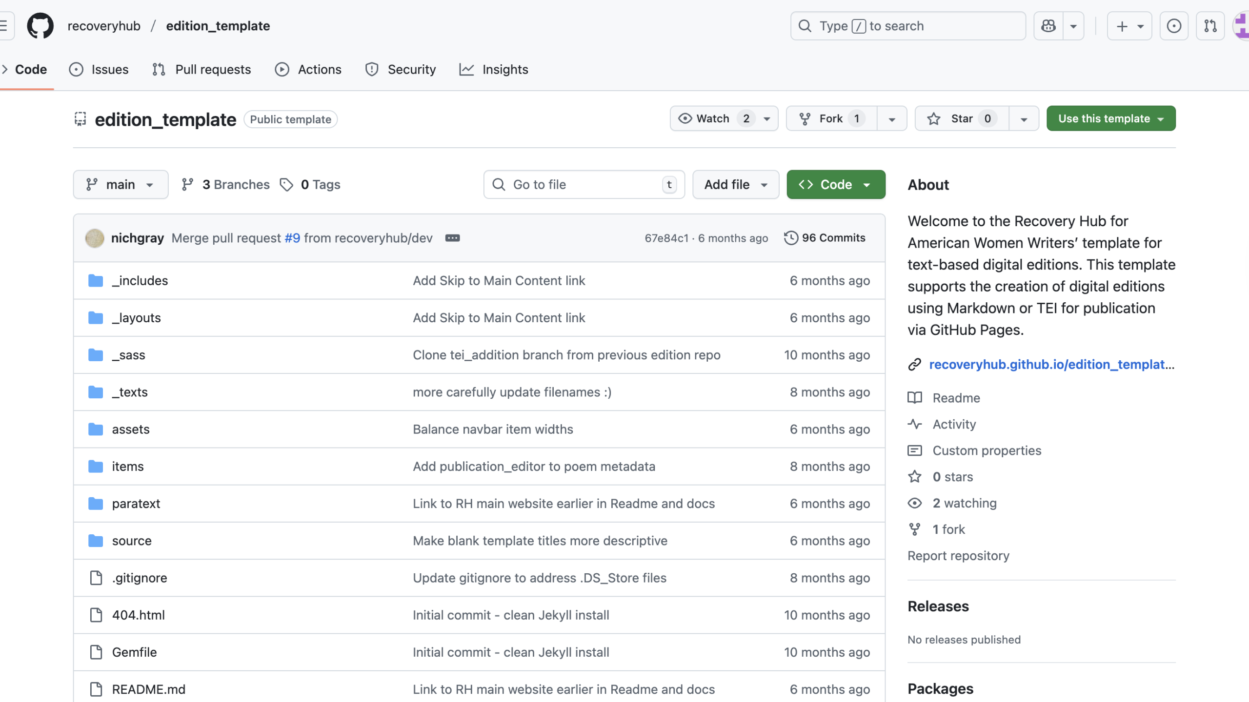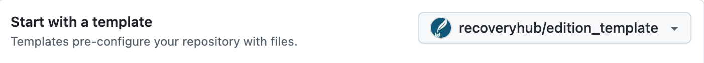 To get started with your own edition, you’ll need to create a GitHub repository for your project using our Recovery Hub edition template. (The repository is the folder that stores all of the code for a given project.)