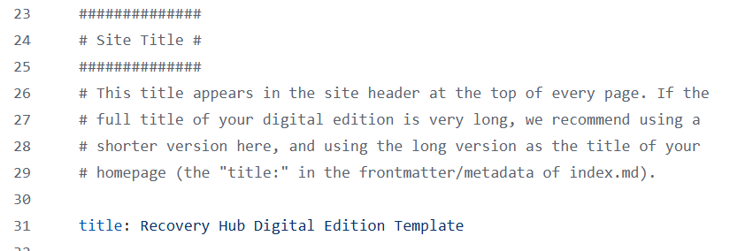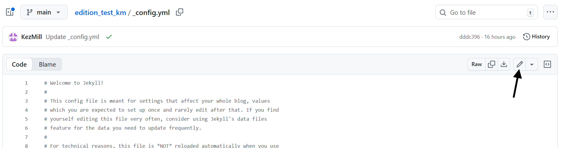 If you haven’t already, locate and open the _config.yml file in the main branch of your edition’s repository.