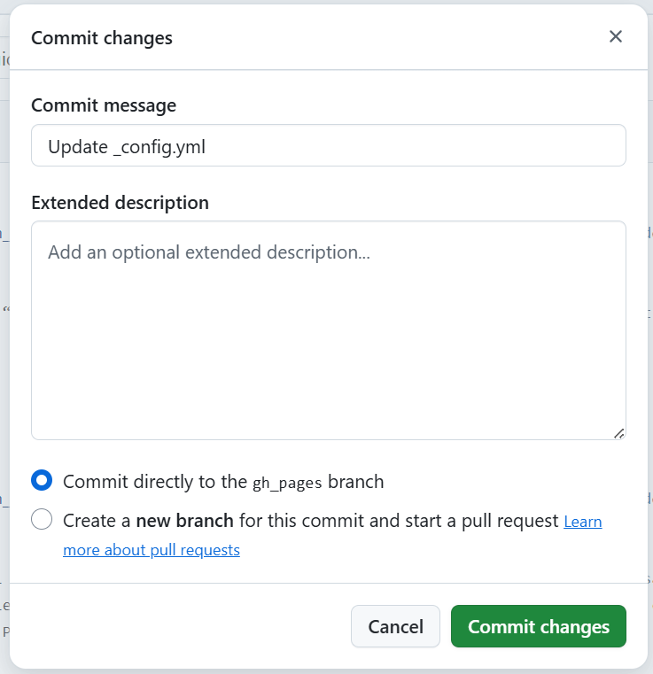 The following step-by-step instructions for changing the _config.yml file apply to all files in your GitHub repository.